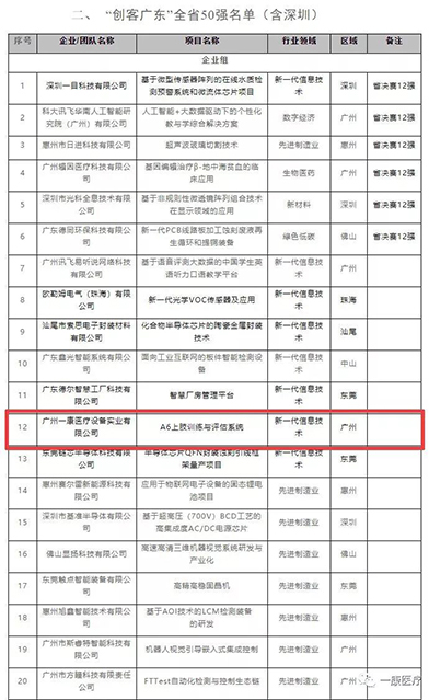 ▲“創(chuàng)客廣東”全省50強部分名單